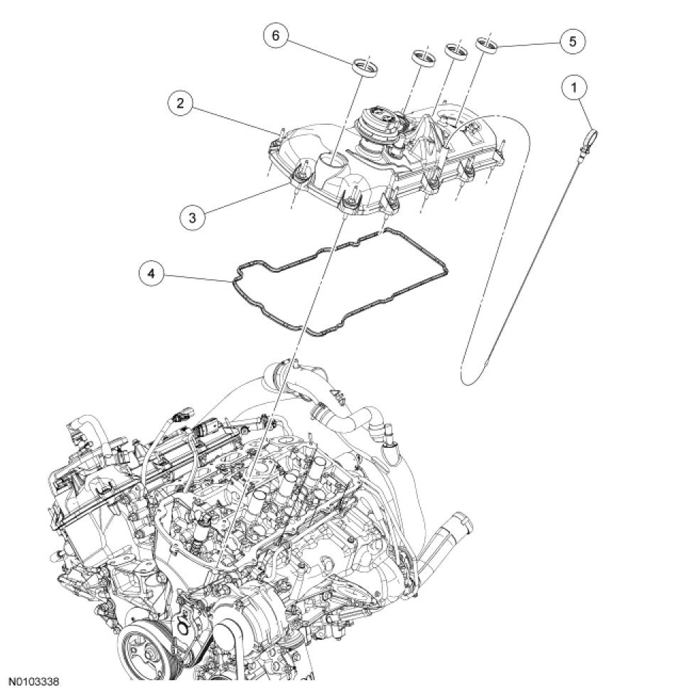 NOTE: If the valve cover is not installed and the fasteners tightened within 4 minutes, the sealant must be removed and the sealing area cleaned. To clean the sealing area, use silicone gasket remover and metal surface prep. Failure to follow these instructions can cause future oil leakage.