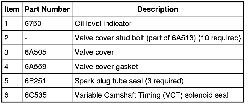 Inspect the VCT solenoid seals and the spark plug tube seals. Remove any damaged seals.