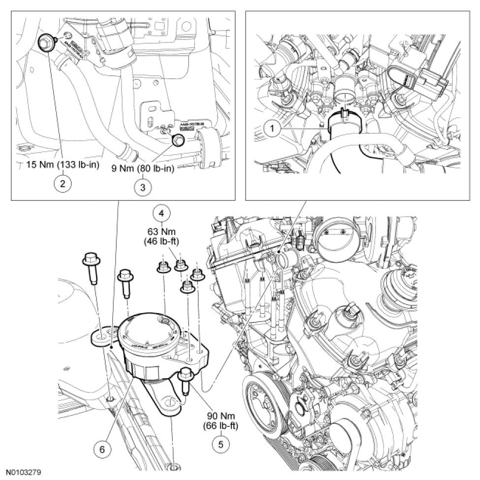 - To install, tighten to 63 Nm (46 lb-ft).