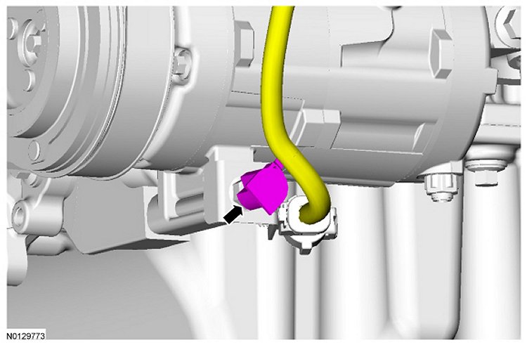 13. Tighten the A/C compressor nut to 25 Nm (18 lb-ft).