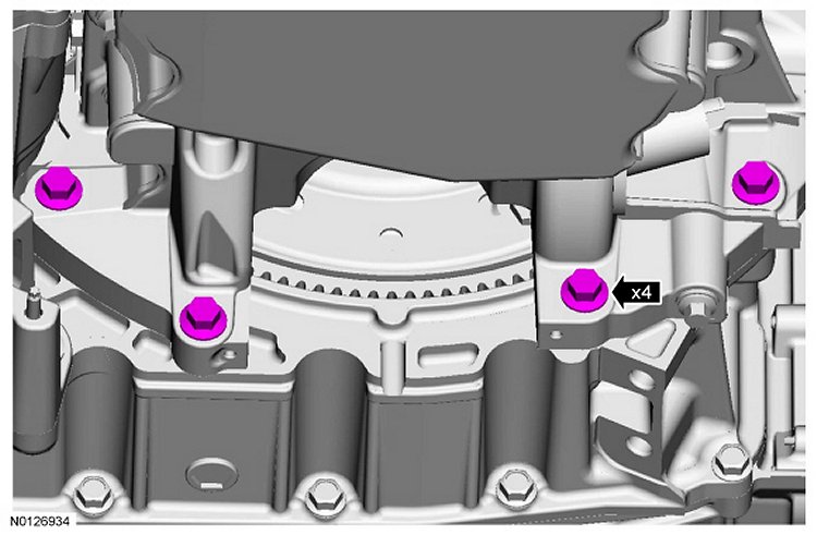 15. Tighten the 4 oil pan-to-bellhousing bolts to 48 Nm (35 lb-ft).