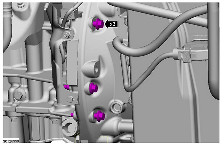 17. Tighten the 3 LH bellhousing-to-engine bolts to 48 Nm (35 lb-ft).