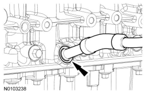 106. NOTICE: It is very important to visually inspect the routing of the wire harness to make sure that the wire harness will not be pinched or damaged between the fuel rail and the cylinder head during installation.