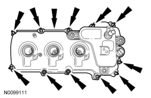 Inspect the VCT solenoid seals and the spark plug tube seals. Install new seals if damaged.