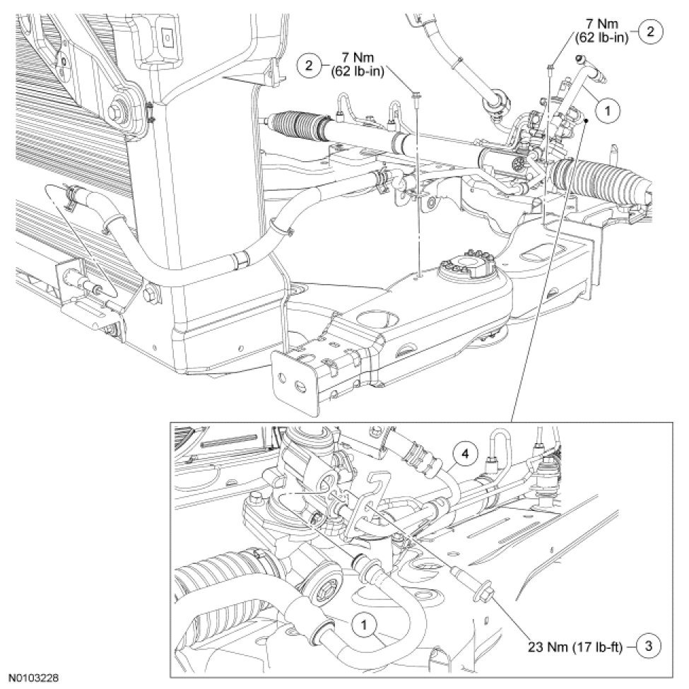 6. Fill the power steering system. For additional information, refer to Steering.