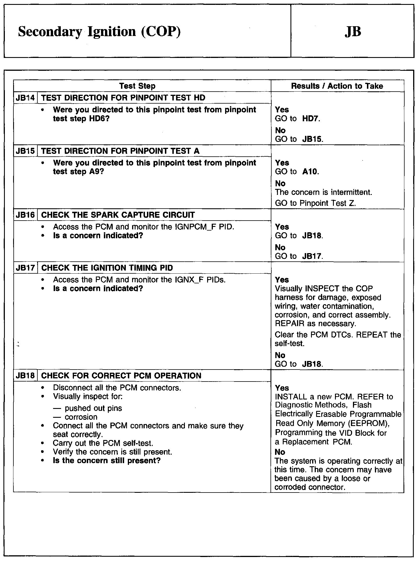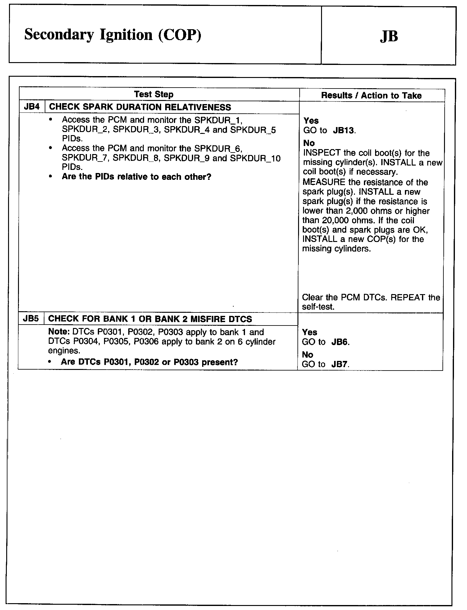 PINPOINT TEST JB: SECONDARY IGNITION (COP)