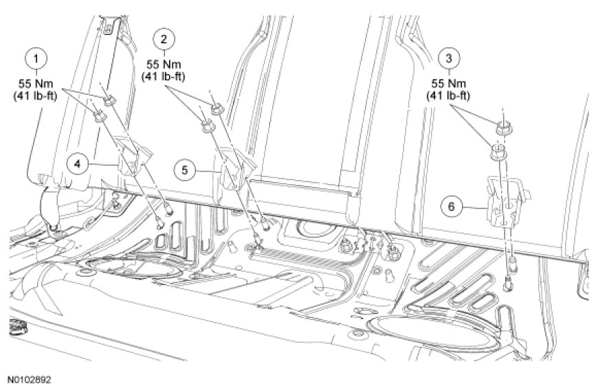 1. Remove the rear seat cushion. For additional information, refer to Seats.