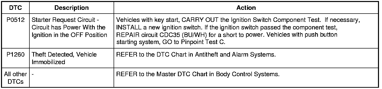 NOTE: Refer to Description and Operation, Intelligent Access with Push Button Start in Antitheft and Alarm Systems, to review the procedures for achieving the various ignition states (ignition OFF, ignition in ACCESSORY, ignition ON, ignition START) on vehicles with this feature.
