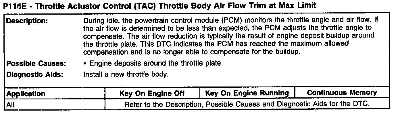 P115E - Throttle Actuator Control (TAC) Throttle Body Air Flow Trim At Max Limit: