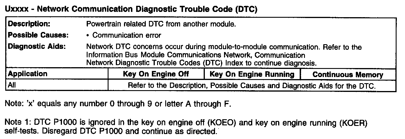 Uxxxx - Network Communication Diagnostic Trouble Code (DTC):