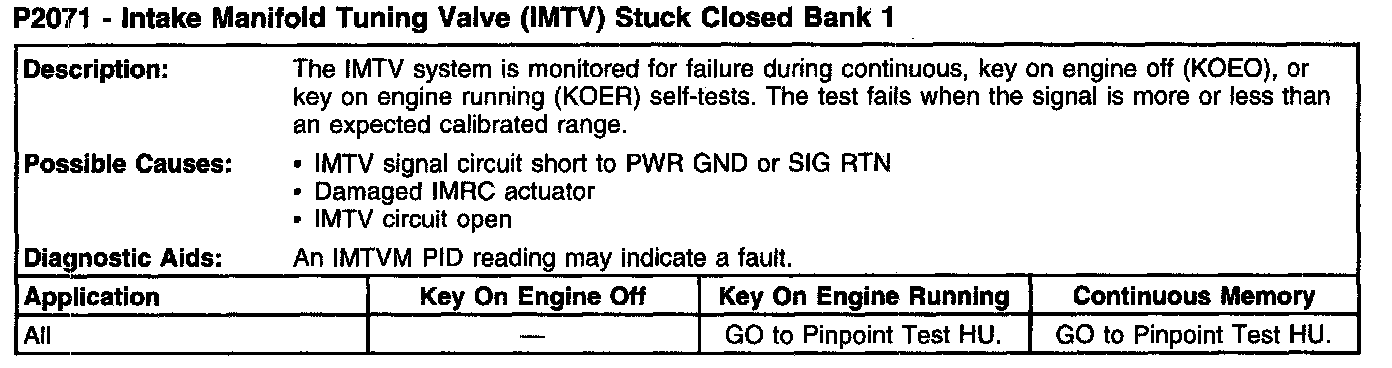 P2071 - Intake Manifold Tuning Valve (IMTV) Stuck Closed Bank 1: