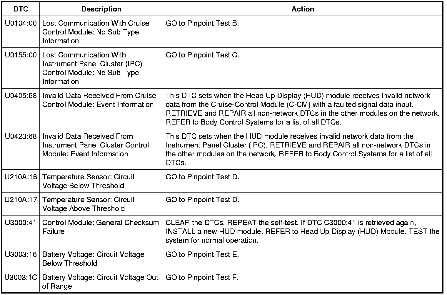 NOTE: This module utilizes a 5-character DTC followed by a 2-character failure-type code. The failure-type code provides information about specific fault conditions such as opens, or shorts to ground. Continuous memory DTCs have an additional 2-character DTC status code suffix to assist in determining DTC history.