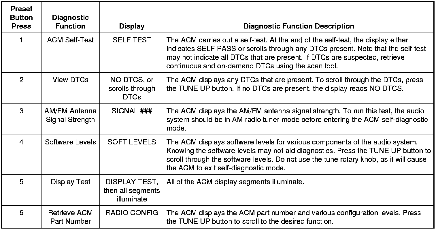 Audio Control Module (ACM) Self-Diagnostic Mode
