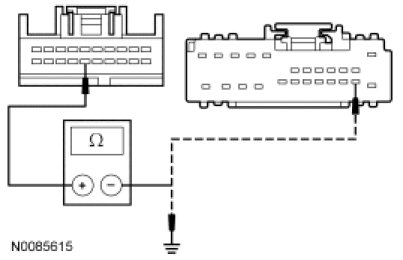 - Measure the resistance between the audio DSP module C4326a-6, circuit VMN07 (GY), harness side and the ACM C2253a-2, circuit VMN07 (GY), harness side; and between the audio DSP module C4326a-6, circuit VMN07 (GY), harness side and ground.