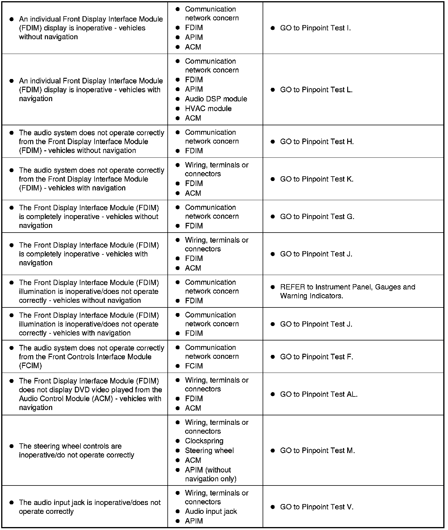 Symptom Chart - General Audio System