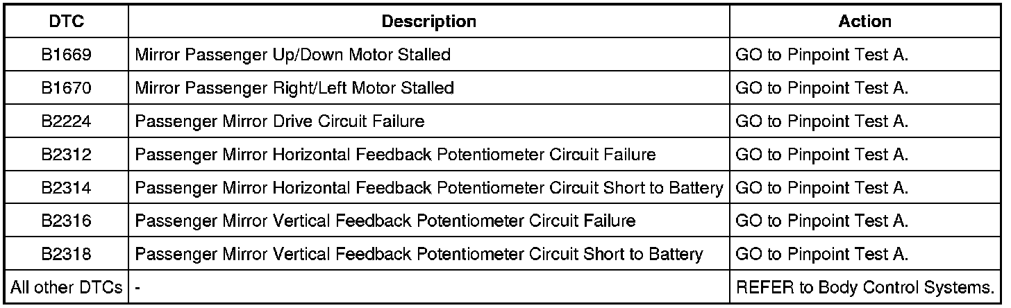 Driver Door Module (DDM) DTC Chart