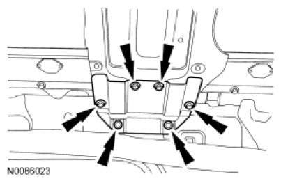 3. Position the safety canopy module and install the 6 safety canopy module bolts and the A-pillar bolts. For additional information, refer to Restraint Systems.