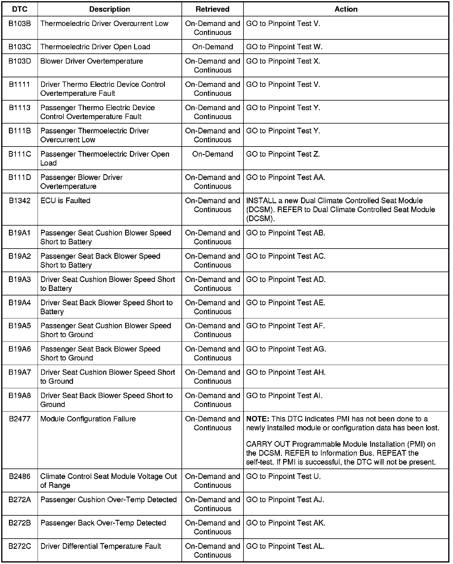 Dual Climate Controlled Seat Module (DCSM) DTC Chart
