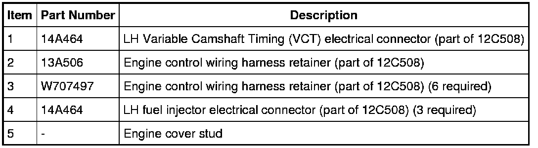 7. Attach all of the wiring harness retainers to the LH valve cover stud bolts.