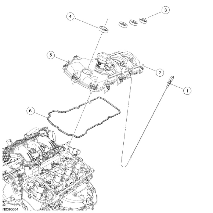 2. NOTICE: Failure to use the correct Motorcraft(R) High Performance Engine RTV Silicone may cause the engine oil to foam excessively and result in serious engine damage.