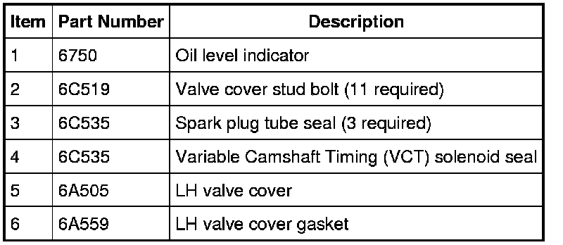 Inspect the VCT solenoid seals and the spark plug tube seals. Remove any damaged seals.