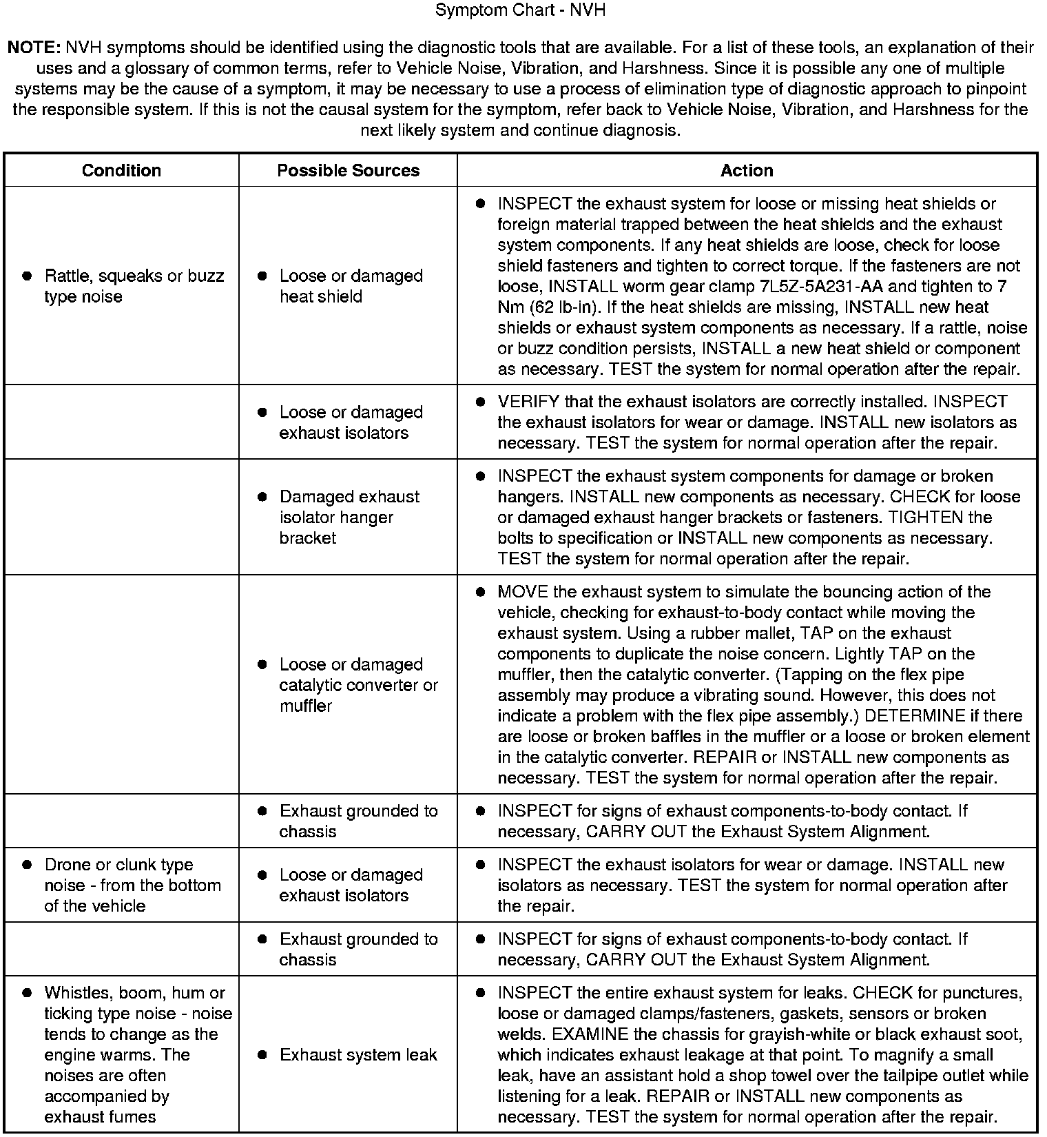 Symptom Chart - NVH