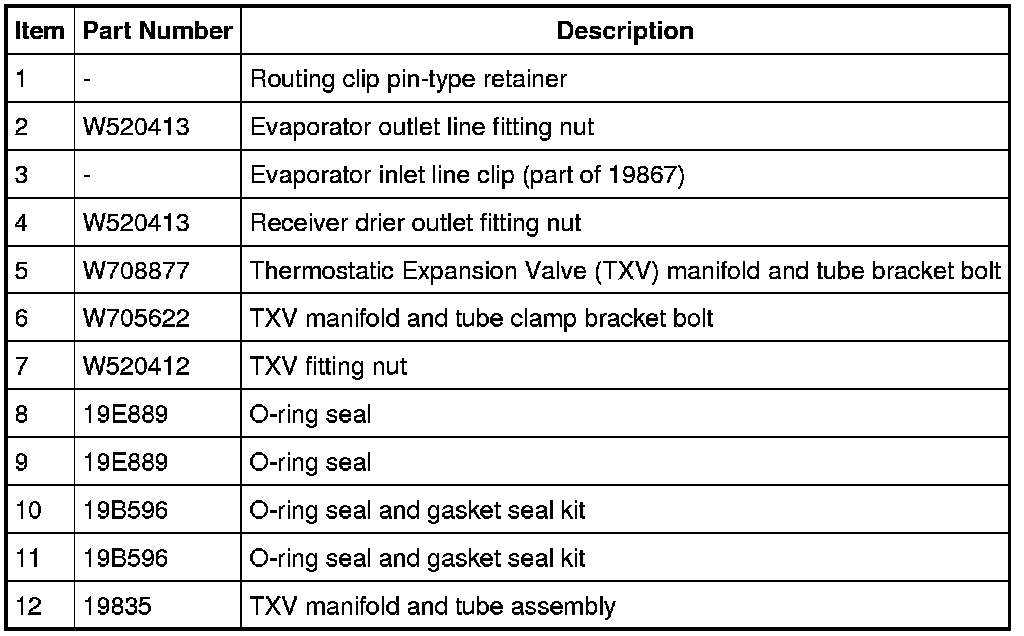 11. Detach the routing clip pin-type retainer from the Thermostatic Expansion Valve (TXV) manifold and tube bracket.