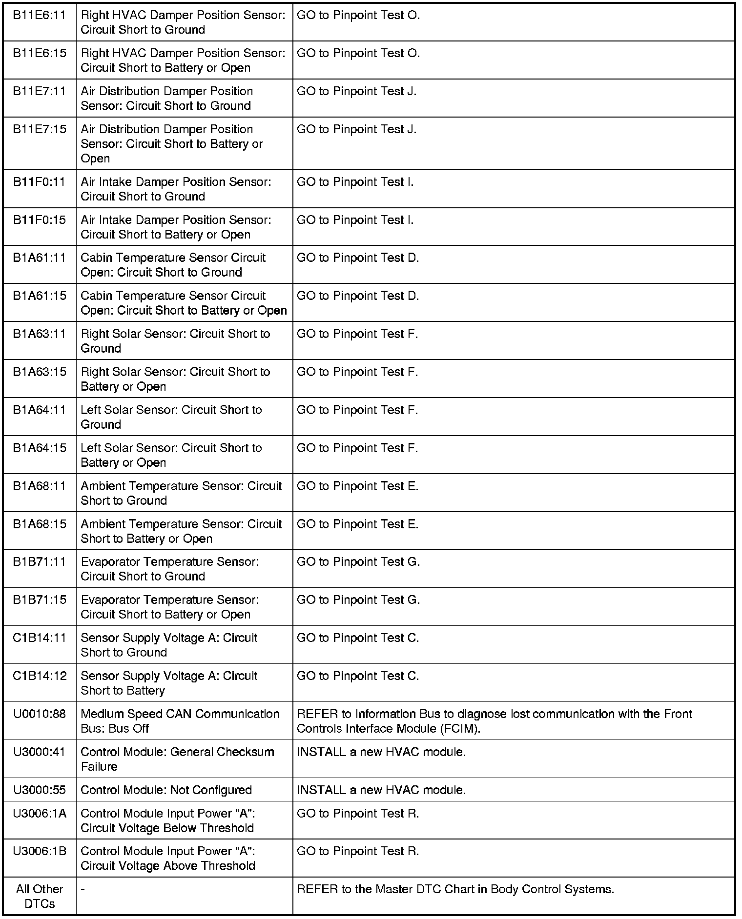 NOTE: Some PCM DTCs may inhibit A/C operation. If any PCM DTCs are retrieved, diagnose those first. Refer to the PCM DTC Chart.