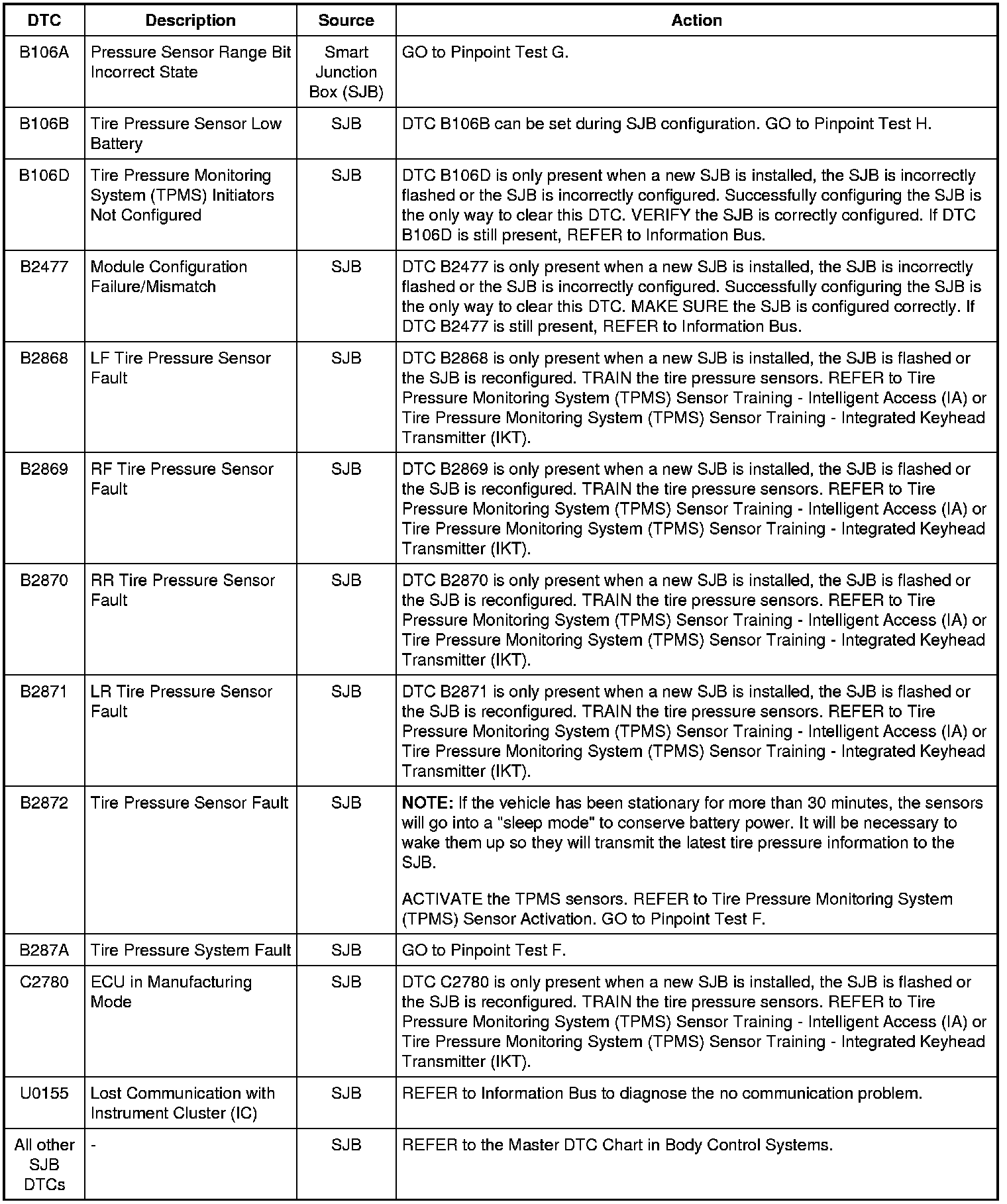 Tire Pressure Monitoring System (TPMS) DTC Chart