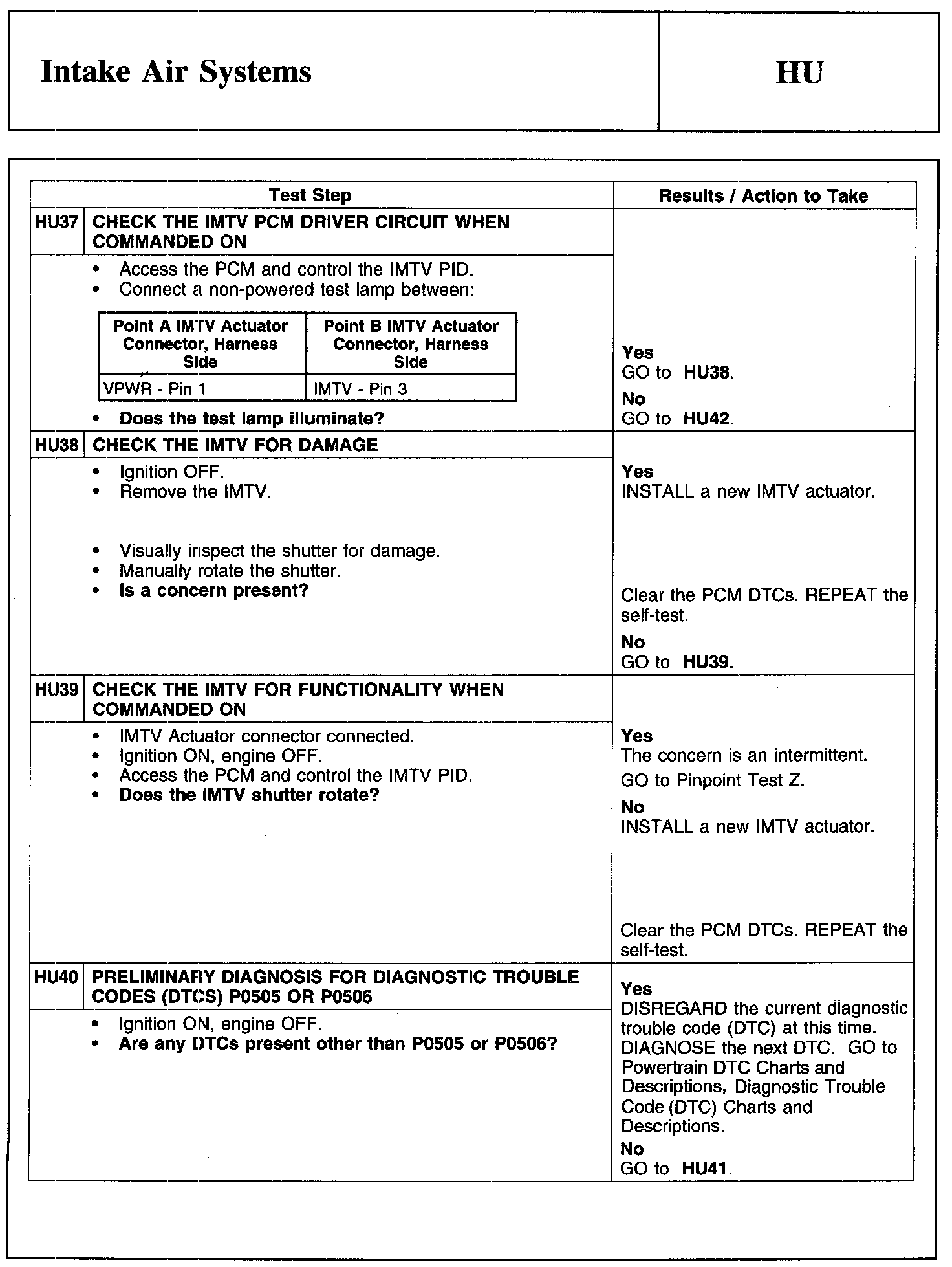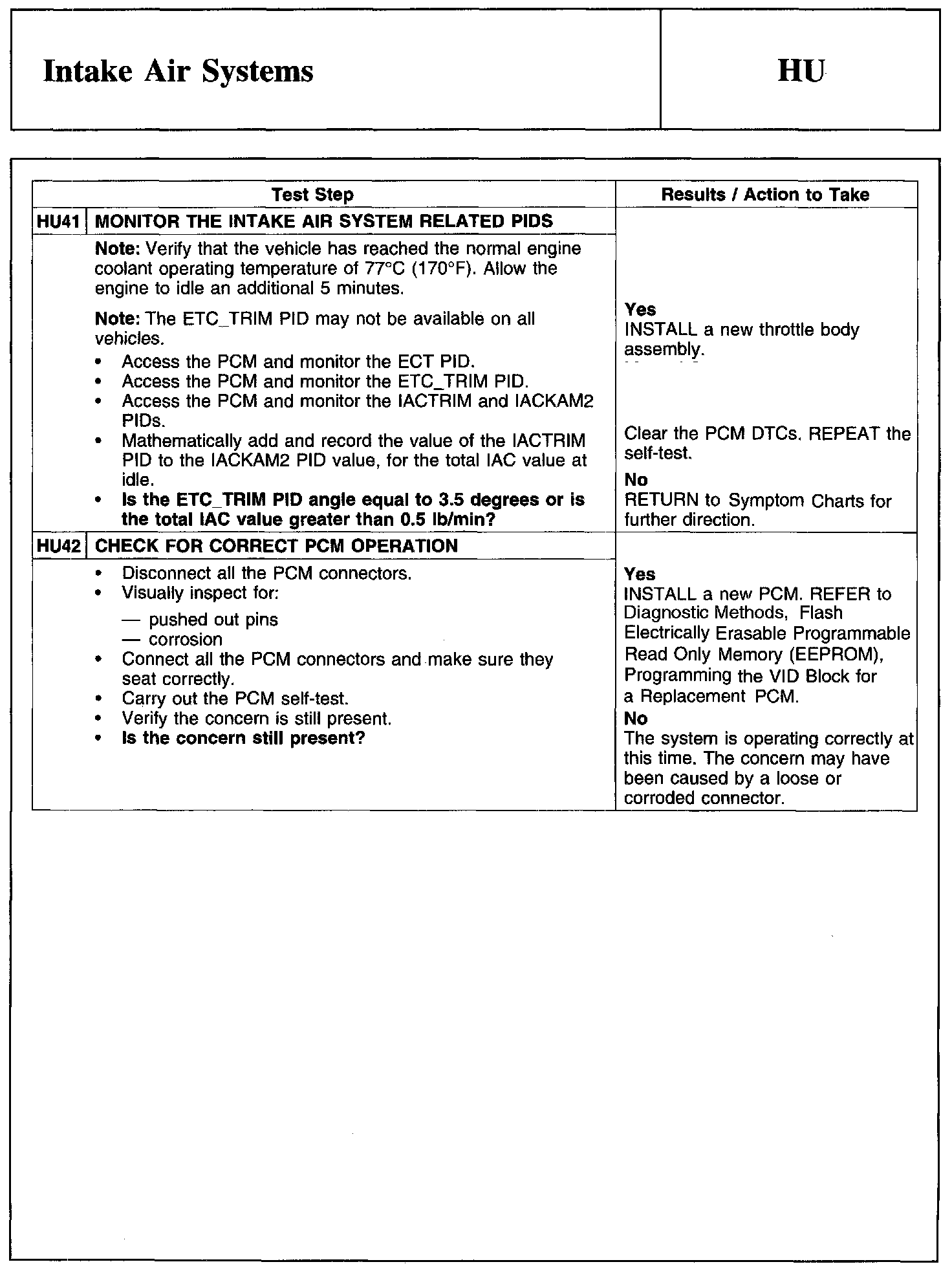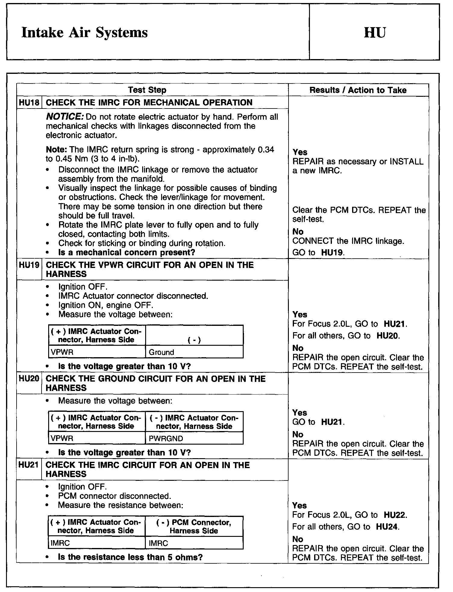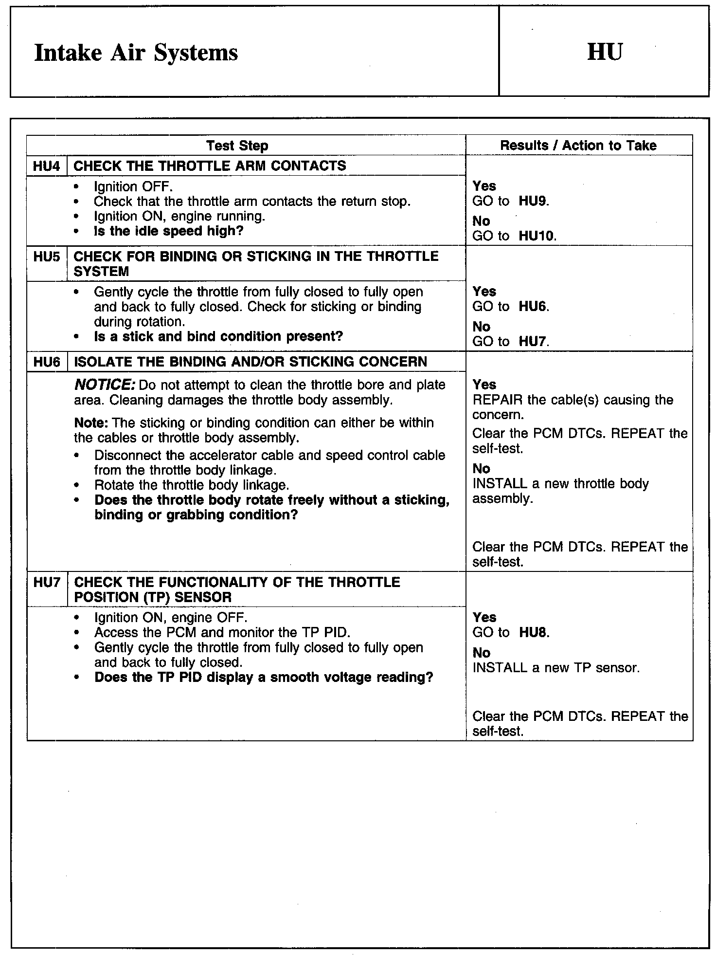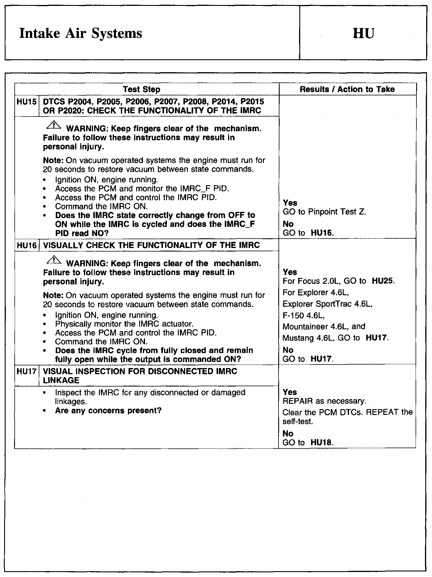 Test HU: Intake Air Systems