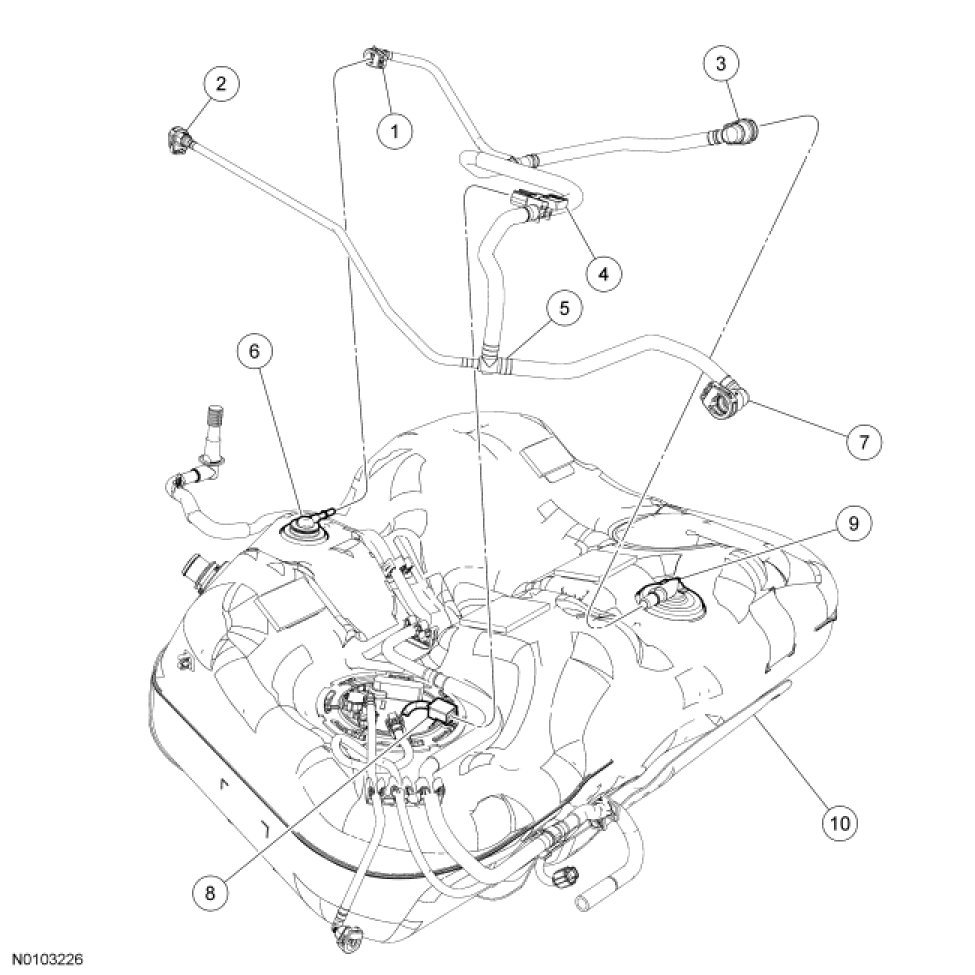 5. Release the retainer clips and remove the fuel vapor tube assembly.