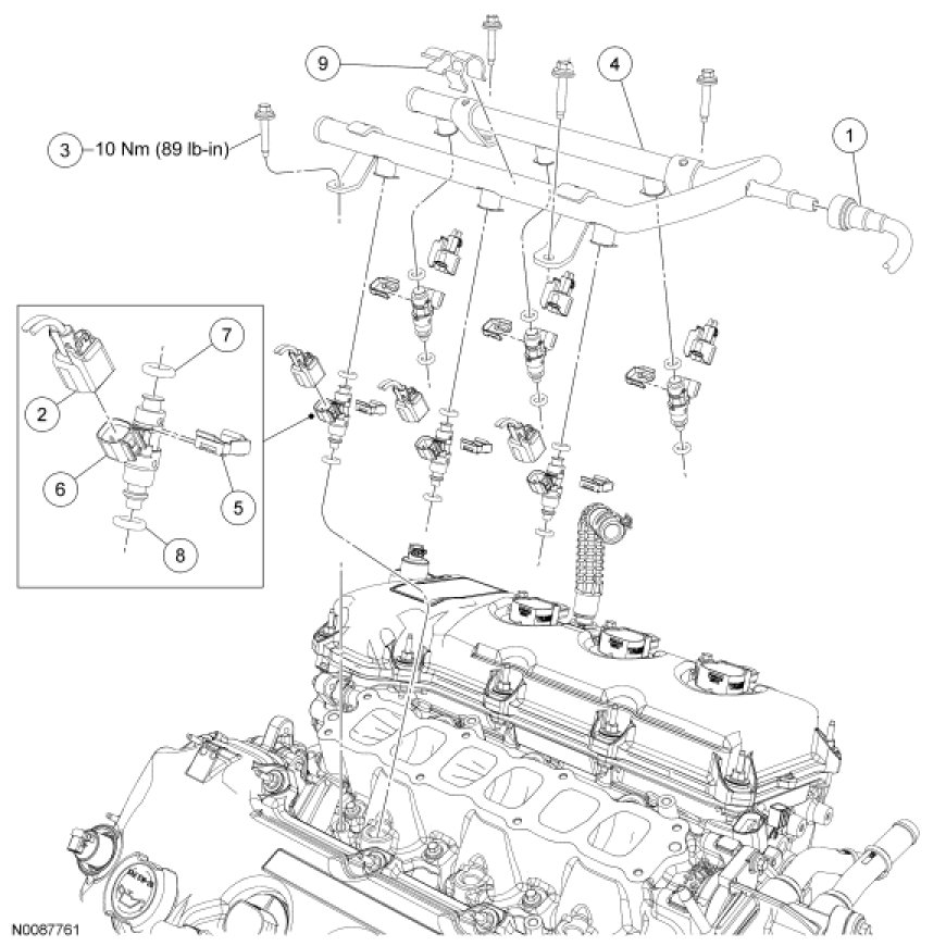 3.5L GTDI RH Fuel Rail and Fuel Injectors