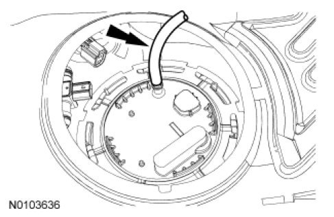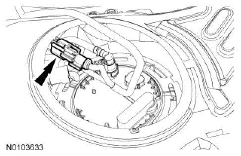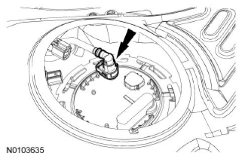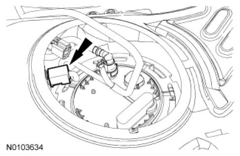Disconnect the fuel tank jumper tube-to-FP module quick connect coupling. For additional information, refer to Quick Connect Coupling Quick Connect Coupling.