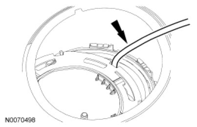 10. NOTICE: Carefully install the Fuel Tank Sender Unit Wrench to avoid damaging the Fuel Pump (FP) module when removing the lock ring.