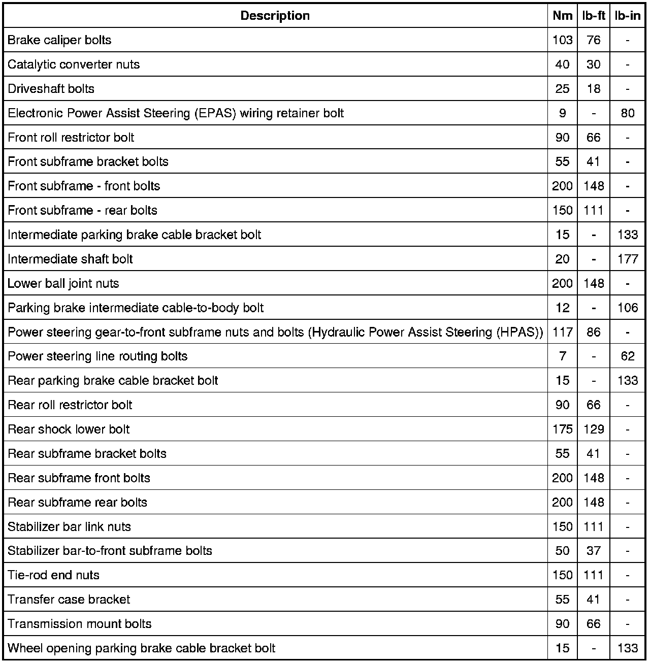 Torque Specifications