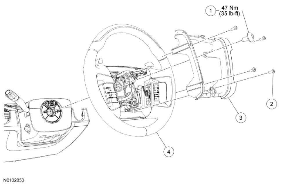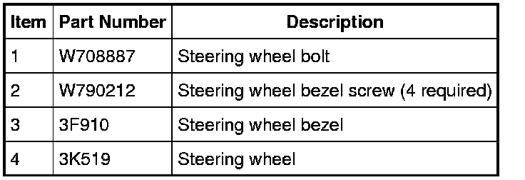 1. Remove the driver air bag module. For additional information, refer to Restraint Systems.