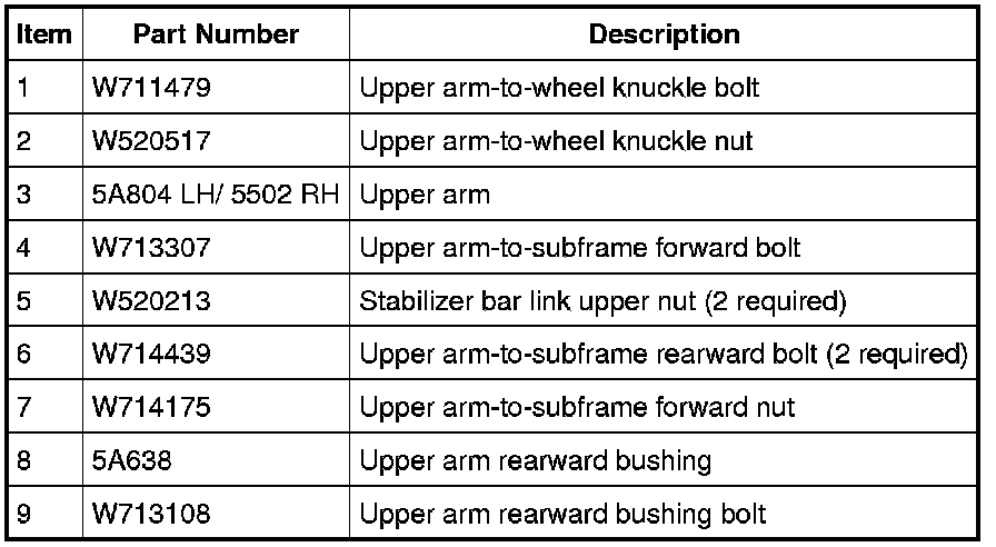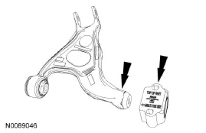 13. Remove and discard the upper arm-to-subframe forward bolt and nut.