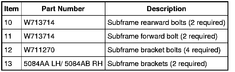 10. Remove and discard the 4 subframe bracket bolts.
