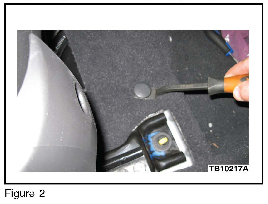 9. Remove hold-down pushpin from driver and passenger side front carpet. (Figure 2)