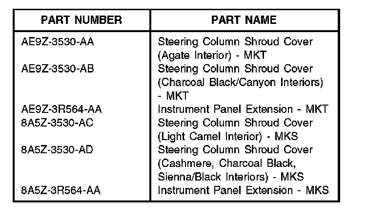 Some 2010-2011 MKT and 2009-2011 MKS vehicles built on or before 9/1/2010 may exhibit a scraping noise coming from the instrument cluster finish panel extension and the upper steering column shroud during column tilt/telescoping operation.