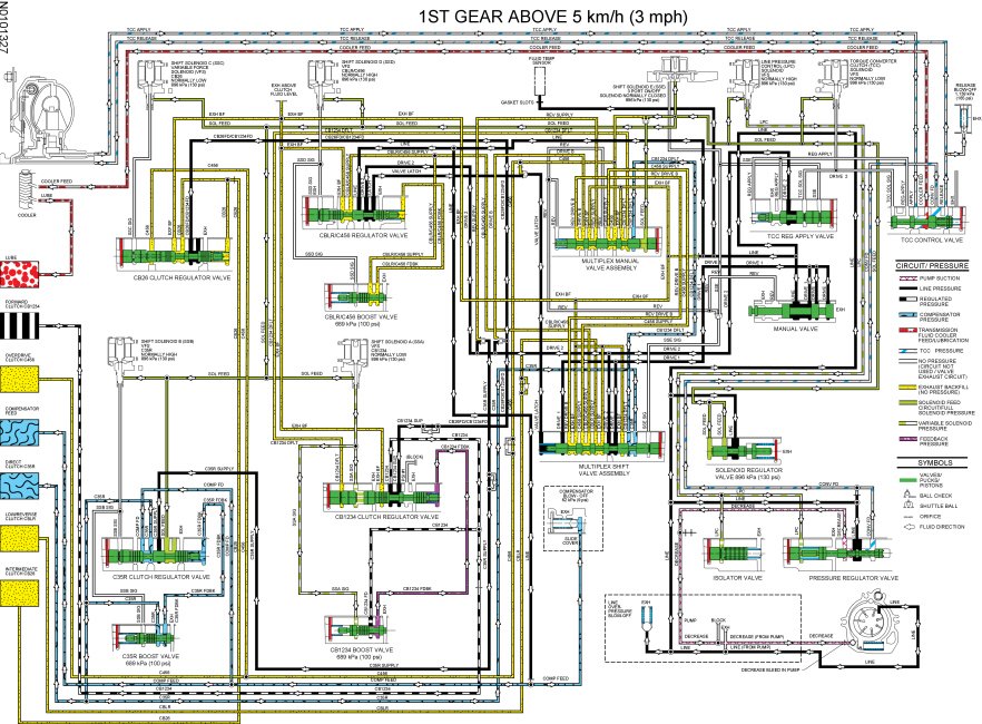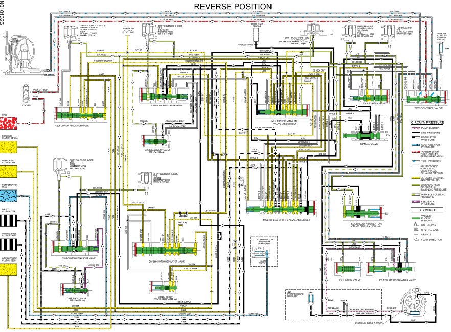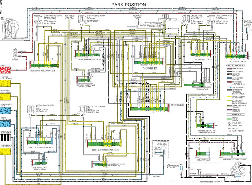 - Regulated CB1234 SUP pressure from the forward (1, 2, 3, 4) clutch regulator valve is directed to the forward (1, 2, 3, 4) clutch through the CB1234 hydraulic circuit to apply the clutch.