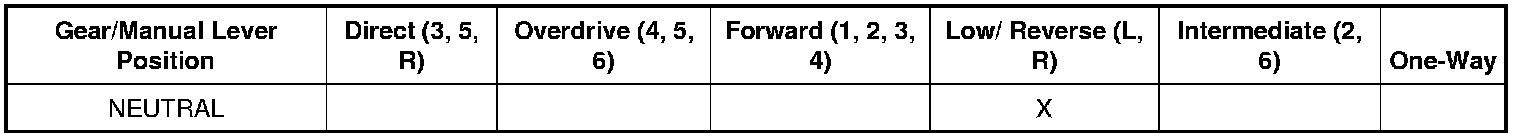 Neutral Position Clutch Application Chart