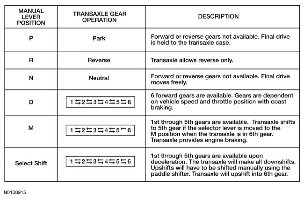 - the driver can manually shift the transaxle to gears 1 through 6.
