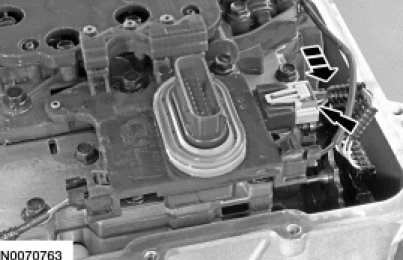 6. Slide the Transmission Range (TR) sensor electrical connector lock tab over to unlock the connector.