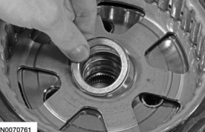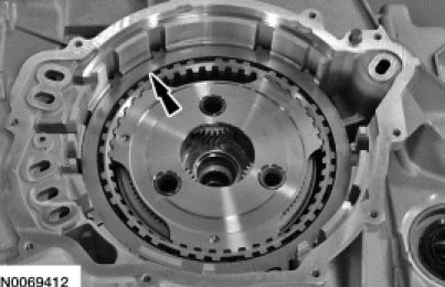 25. NOTE: The location of the tab on the bottom pressure plate is aligned with the gap for the low One-Way Clutch (OWC) snap ring.