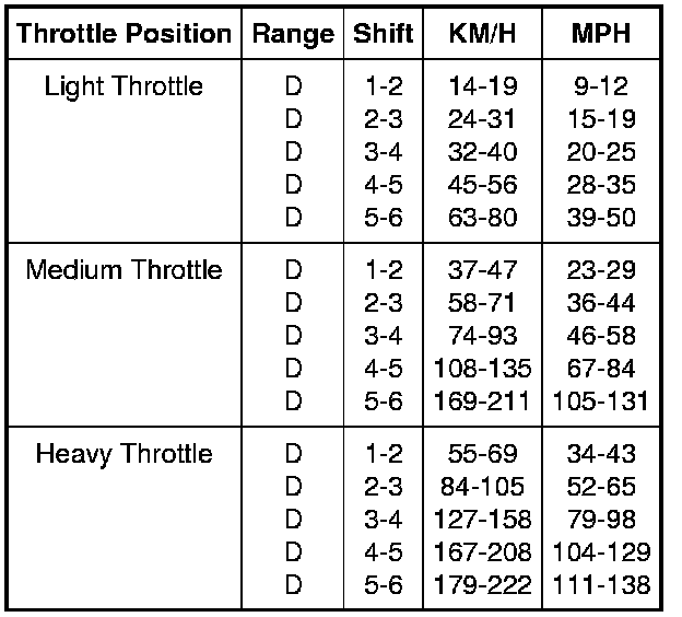 3. NOTE: Shift speed ranges are approximate for all applications. For specific applications (engine, axle ratio and application), refer to the Automatic Transmission Specification Issue available from Ford Customer Service Division.