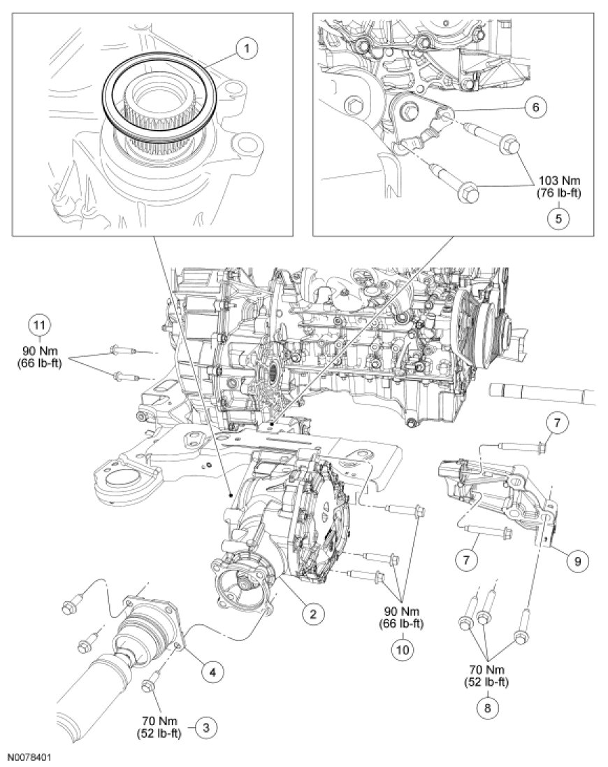- Tighten the rear engine roll restrictor bolt to 90 Nm (66 lb-ft).