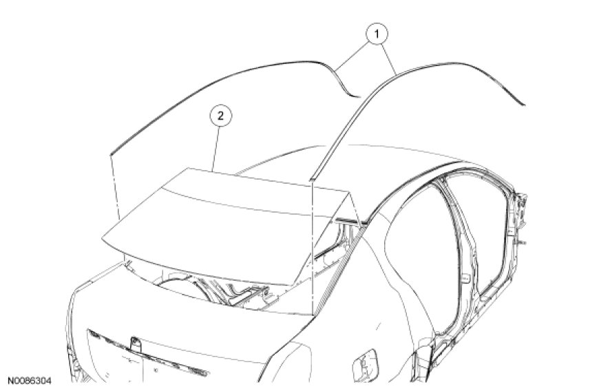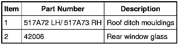 4. Position aside the rear portion of the LH and RH roof ditch mouldings. For additional information about the roof ditch moulding clips and their location(s), refer to Roof Ditch Moulding in Auxiliary Step / Running Board.