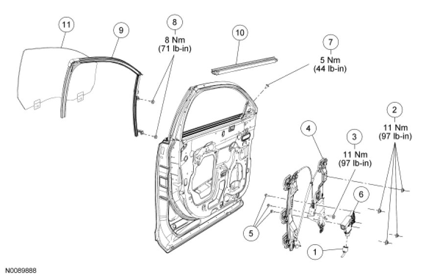 Glass, Frames and Mechanisms - Exploded View, Front Door