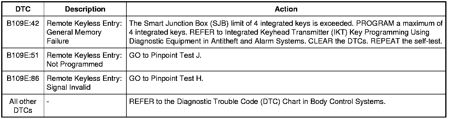 Smart Junction Box (SJB) DTC Chart